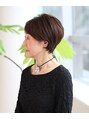 レイヤーの入っているボブなので、トップに高さが出て、頭の形がきれいに見えます。 短めの前髪でも動きが出るようにカットしてあるので、エレガントな雰囲気になります。