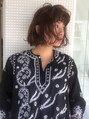 ラフなスタイリングのニュアンスボブ。ふんわりとした動きをニュアンスパーマでだしました。カーキベージュで透明感のある外国人風の質感に。