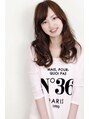 ナチュラル系のアッシュブラン。カットは、前上がりベースのセミロング。少しコテ巻き。