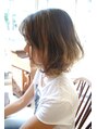 動きのある可愛らしいボブです♪カットは前下がりで少し丸みが出るようにグラデーションを入れて、動きはエアウェーブで大きめのカールを出して、さらにハイライト、ローライトで立体感をだしています。テンション上がるスタイルチェンジです☆BELL桜新町