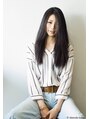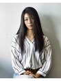 毛先を整頓したシンプルなストレートヘア。透き通るようなヴァイオレットアッシュは、重たく見えがちなワンレングスのロングヘアに軽さを与えます。