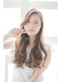 前髪をかきあげた、ミックスカールスタイルです。可愛らしい雰囲気を出しつつ、どこか大人女子の様な雰囲気をもつスタイルは、オシャレ女子の人気のスタイルです 【AULA 横浜/横浜駅】