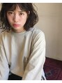 ミディアムボブのニュアンスパーマスタイル。全体的に大きめのニュアンスをプラス。細かく入れたハイライトがより透明感と動きを出してくれます。軽くして束感スタイリングが可愛いスタイルです。