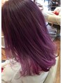 一度ブリーチをしてから全体にカラーバターでパープルを入れてます。