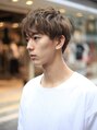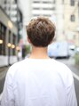 頭をコンパクトにカッコよくみせるショートスタイルです。トップのみにパーマをかけ形を整えセットしやすいスタイルに、カラーは11レベルのマットブラウンで柔らかい印象にしてくれます。