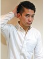 男らしくガツッと刈り上げてトップを流したスタイルです。スタイリングも楽なのでおススメです!分け目の部分にもラインを入れています。