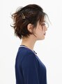 グラデーションショートをベースに、ショートアレンジ。波ウェーブでボリュームを出したベースに、トップをひねってボリュームを出しピンで留め、サイドに飾りピンを。360度どこから見ても可愛い簡単アレンジです。