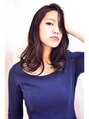 前上がりのローレイヤースタイル大きめのロッドでフォワードとリバースをMIXさせて巻き、毛先にランダム感を。カラーは7レベルで暗めのアッシュブラウンでワンメイク。(戸塚)