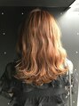 アプリエカラーで暖色系にも透明感を。ラインの揃ったセミロングヘアは軽めにして無造作でラフなウエーブに。色味を強くしてもアンニュイなウエーブで作り込み過ぎないこなれ感が出ます。