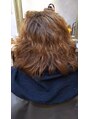カラーはモノトーンシルバーの8トーンで染めました。カットはパーマをいかしてトップを短くし段をいれて動きが出るようにしました。