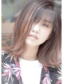 肩下の外ハネミディアム。カジュアルでストリート感が漂うスタイル。バングは薄めのシースルーバング、カラーはハイライトのグラデーションで夏っぽさを演出★