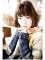 トップをふんわりボリュームシルエットヘア。ナチュラルなワンカールパーマが◎。斜めバングに設定しツヤを失わないカットで大人かわいいひし形美髪ヘア。伸ばしかけの方も黒髪の方も厚めバングのイメージチェンジしたい方、耳かけアレンジする方もOK!