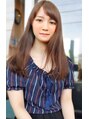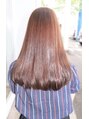 アウトラインを水平にカットしたノーレイヤー。少し重ためですが毛先はスライドカットを入れることで動きをだしやすいようにしてます。カラーは8トーンのベージュで優しい雰囲気に。