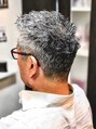 サイド5mmから後頭部はハイウエイトに設定し、バキッと刈り上げました。ジェントル・イタリア人風バーバースタイルです♪直毛の方のお悩みアルアル・・サイドやハチ周りのハネ具合や立ち具合にもユルパーマで対応いたします♪