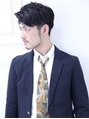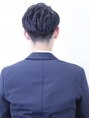 オールバックネイビ-ブラック/ビジネスメンズカット/30代/40代