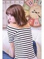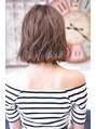 肩上の切りっぱなしボブがベースです。前髪はやや少なめでシースルーバングっぽく!9トーンのシルバーアッシュで透明感を!デジタルパーマをかけるとスタイリングが楽になります♪