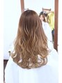表面には細かいハイライトを。ハイライト部分のみonカラー。毛先の明るさを活かして、グラーデーションに☆波ウエーブ仕上げ☆(