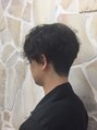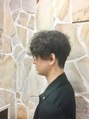 ウェーブをきかせたパーマスタイルです。後ろは刈り上げてスッキリさせて、大人なスタイルです。