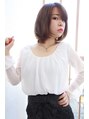 光が通った時にしっかり透明感が出るベルベットグレージュがこの季節はオススメカラーです。ツヤ感もあり上品な仕上がりです。カットはシンプルなボブですが、収まりが良くなるようにドライカットで質感を調整しています。