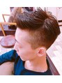 グラデーション刈り上げとアップバングでメリハリのあるstyleに。