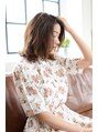 どんな人にも合わせやすいセミディレイヤー。トップと顔周りにレイヤーを入れて立体感を出し、毛先は外はねのミックスパーマで動きをつけて。【EARTH今池】