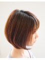 幅広い年代に人気のグラデーションボブです。明るめのカラーで重すぎないイメージに。 くせ毛の方は柔らかく丸みをつけてストレートをかけるとツヤ感が出てスタイリングも楽です♪