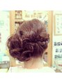 リボンを一緒にあみこんでかわいらしいスタイルです☆パーティにおすすめ!