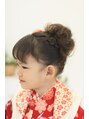 サイドに編み込みを入れて上でふわっとさせたかわいいスタイルです。