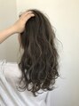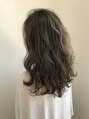 グレージュベースにMIXハイライトでよりコントラスト強めかつ可愛く上品に。前上がりのレイヤーロングスタイルです。