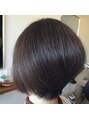 バックからサイドにかけてグラデーションに段が入った前下がりボブ。後頭部の丸みを強調します☆