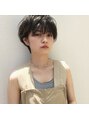 ダークトーンのカーキアッシュで透明感をだしたショートスタイル。長めにカットした前髪を軽くして毛束感をだして夏らしく。