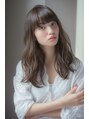 小顔斜めバング&厚めバングのマーメイドアッシュハニーヘア