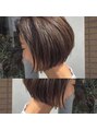 ■こちらのスタイルは、始めに全体に繊細な細さの3Dハイライトを入れています。その後、ベースはグレー系のアッシュをオンカラーすることで、ワンメイクカラーでは叶わない《透明感》《立体感》《動き》のある髪色に。■カットは手入れが簡単な前下がりボブ