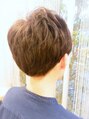 ショートレイヤーベースでカットしツーブロックに。パーマはゆるふわ無造作パーマはランダムに巻きます。