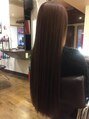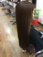 モデルのお客様は毎月カラーをしにご来店頂いているのですが、毎回お客様の髪質に合わせて配合するオージュアシステムトリートメントも施させて頂いていますので、この長さで毎月カラーをさせて頂いていても、この美しい髪をキープされていらっしゃいます。
