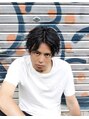 センターパートの無造作ラフパーマ。カラーはブルーブラックでかっこよく。
