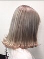 白っぽくなるまで全体をブリーチし、プラチナシルバーを上からかぶせます。