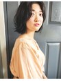 外ハネの切りっぱなしボブスタイル服装や、メイクにあわせて、うちにいれたり、外ハネにしたり、前髪も長めなので、自由自在に、アレンジできます(^ ^)暗めだけど、重すぎないように、表面に動きをつけます!