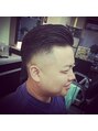 0mmからのスキンフェード!フロントはパーマでボリュームを出しやすくしてます。ハードパート(分け目部分にラインを入れる技術)で分け目くっきり!