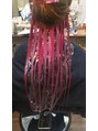インナーカラーにピンク&パープルのカラーバターをしています。表面はブリーチで3Dメッシュをいれています。