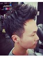 ツーブロックフロント、トップの立ち上がりや、動きを出す為ゆるめにパーマをかけています。