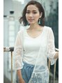 トレンドの切りっ放しボブに、重たく見え過ぎないよう動きを出すためにカールが大きめのパーマを♪朝のスタイリングが楽ちんなスタイルです☆