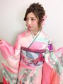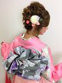 全体波ウェーブでふんわりさせつつ、トップは高さを出して和装っぽい雰囲気に仕上げました。ボブの長さを活かして後れ毛は多めに残しています。格好良さと可愛さの両方を兼ねたスタイルです^^