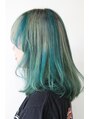エメラルドグリーン、ターコイズブルーのムラ染めカラーが目立ち度満点!!ベースのカラーはシルバー系にしてあるので、寒色系と相性バツグンです!オンリーワンなヘアカラーを求めている方にオススメです!