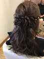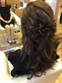 作り込み過ぎないルーズなハーフアップスタイルです。波ウェーブは付けずにナチュラルに。トップの高さを抑えることで丸みのある可愛いシルエットに♪