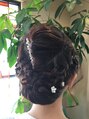 結婚式ヘアアップスタイル。サイドの後れ毛の量とカール具合がポイント。