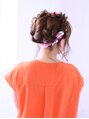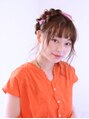 2つに分けた髪をくるりんぱ~三つ編みしてふんわりまとめた可愛らしい雰囲気のアレンジ。スカーフを編み込んで、主役級の華やかさに。立体感を出すようにしっかりと崩すのがポイントです!前髪は透けバングでエフォートレスな雰囲気に♪ 【高崎】