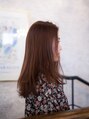 無造作なセミロング。サイドパートで大人可愛い雰囲気にもなります。ピンクベージュのカラーで柔らかさとツヤ感を出しています。トップには軽さと動きが出るようにレイヤーをいれて無造作な雰囲気にしました。