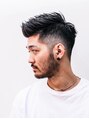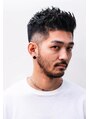 サイドからバックをしっかりと、3ミリから9ミリのフェイドで刈り上げ、トップは遊びが残るくらいの、男らしいショートスタイル。トップをカラー入れるも、パーマでより動かしても可能。