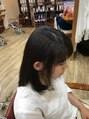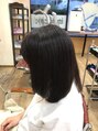 ナチュラルな厚めバングを斜めバングで横に流れるようにカット,つやつや美髪で極潤ローズトリートメントをしっかりして、大人可愛いワンカール。似合わせカットで段をつけすぎないナチュラルミディアムスタイルです!!!